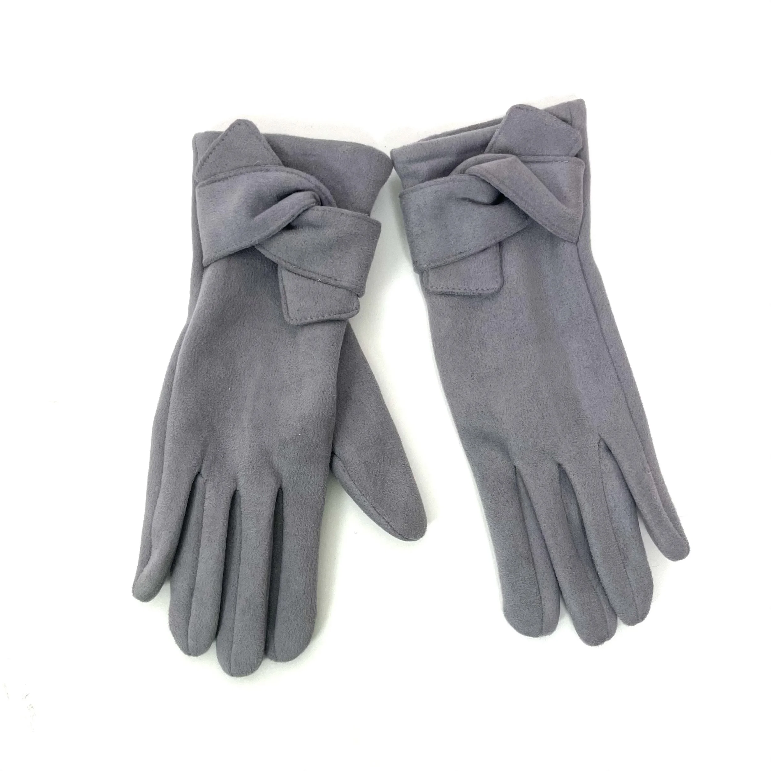 Faux suede gloves with fur detail and phone finger tip