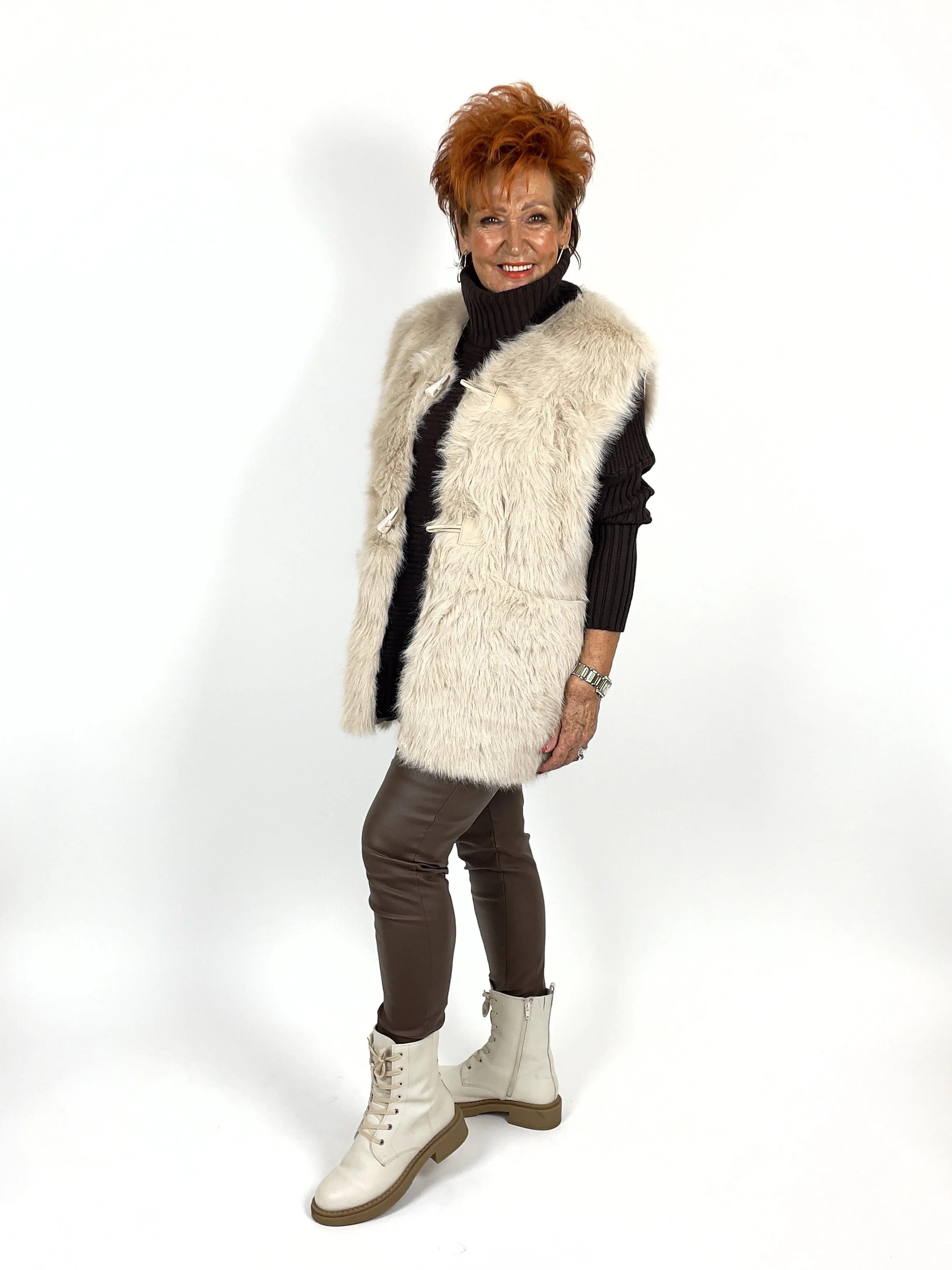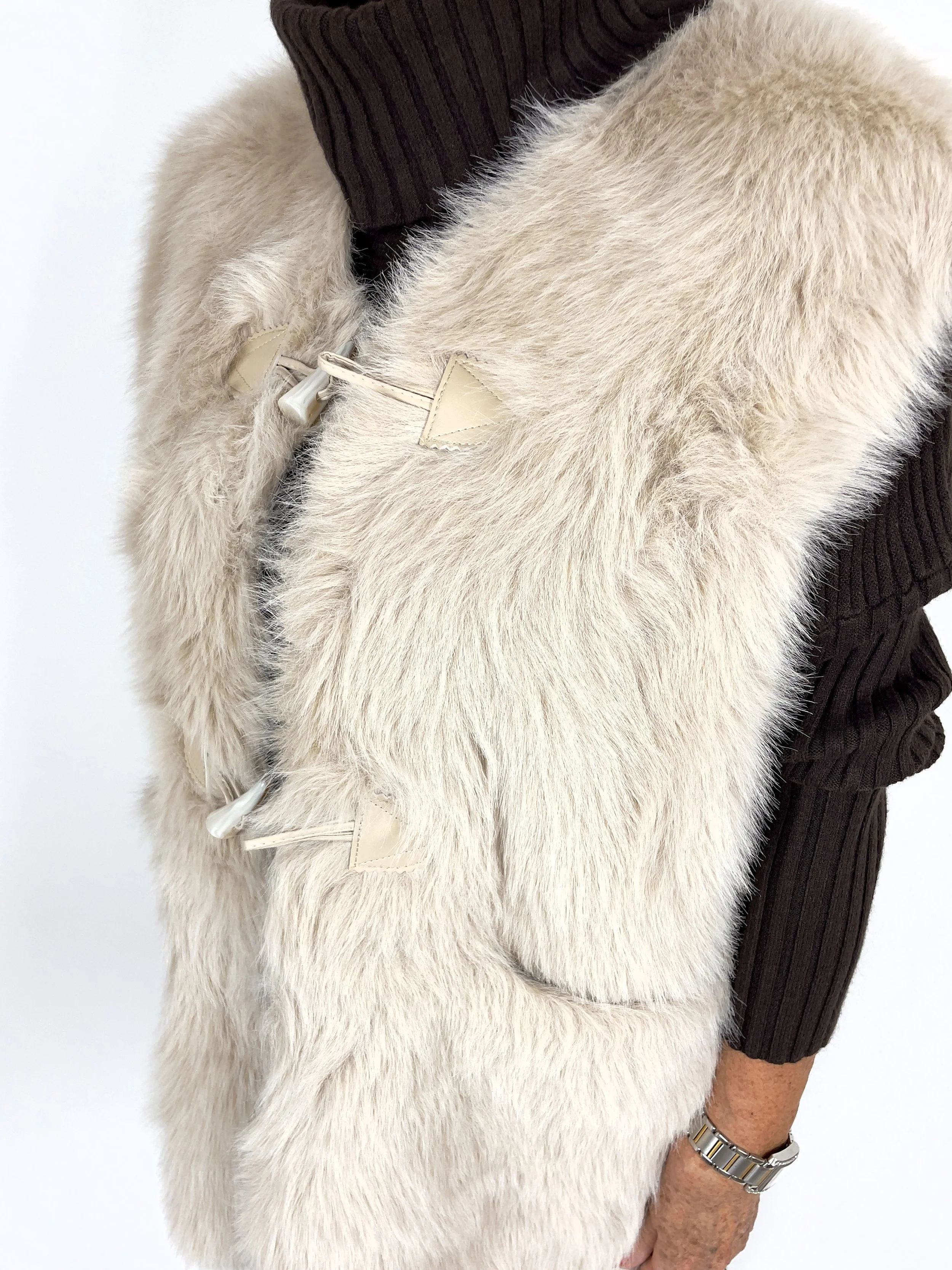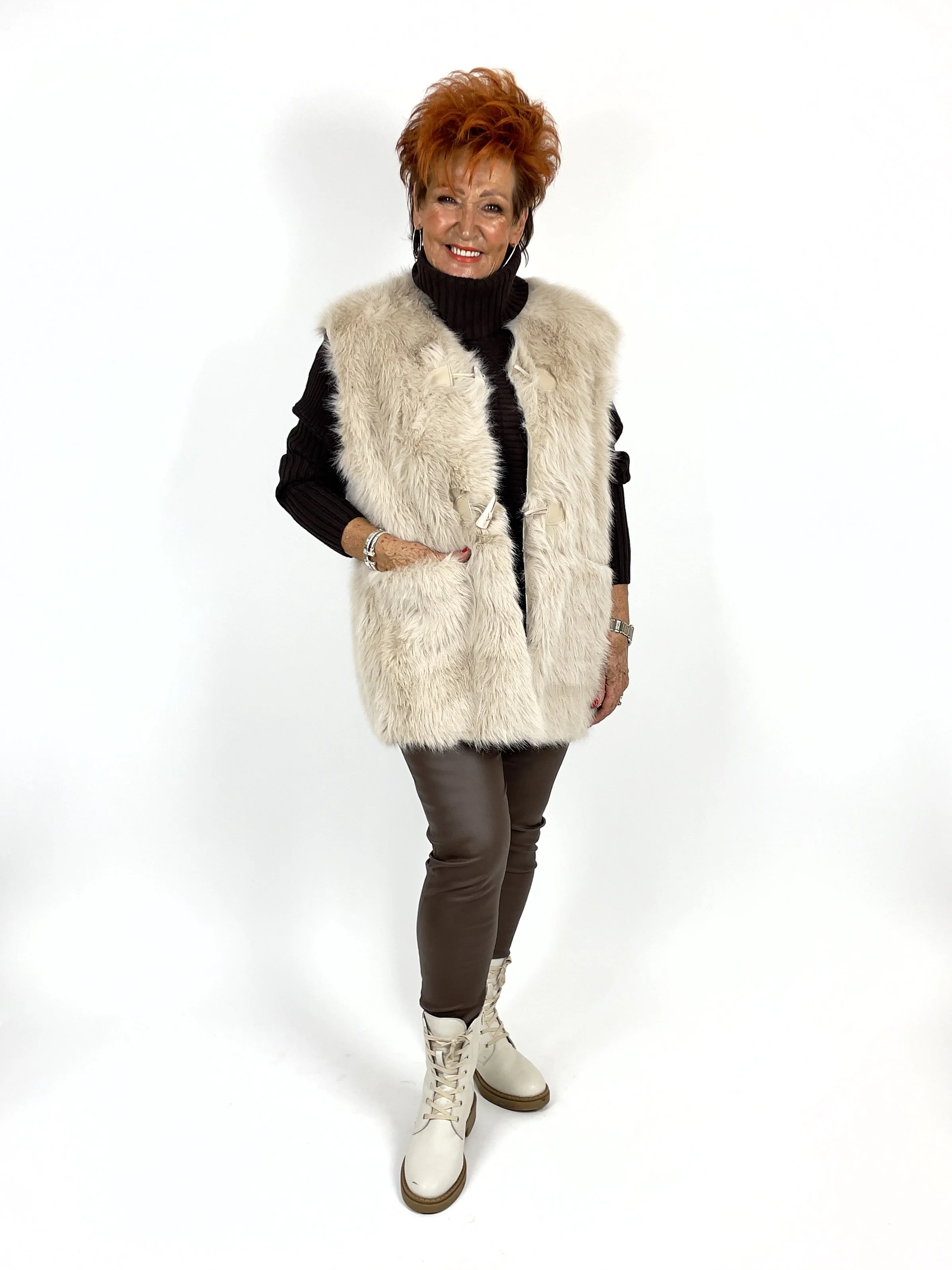 100% polyester ‘Malissa J’ faux fur toggle gilet