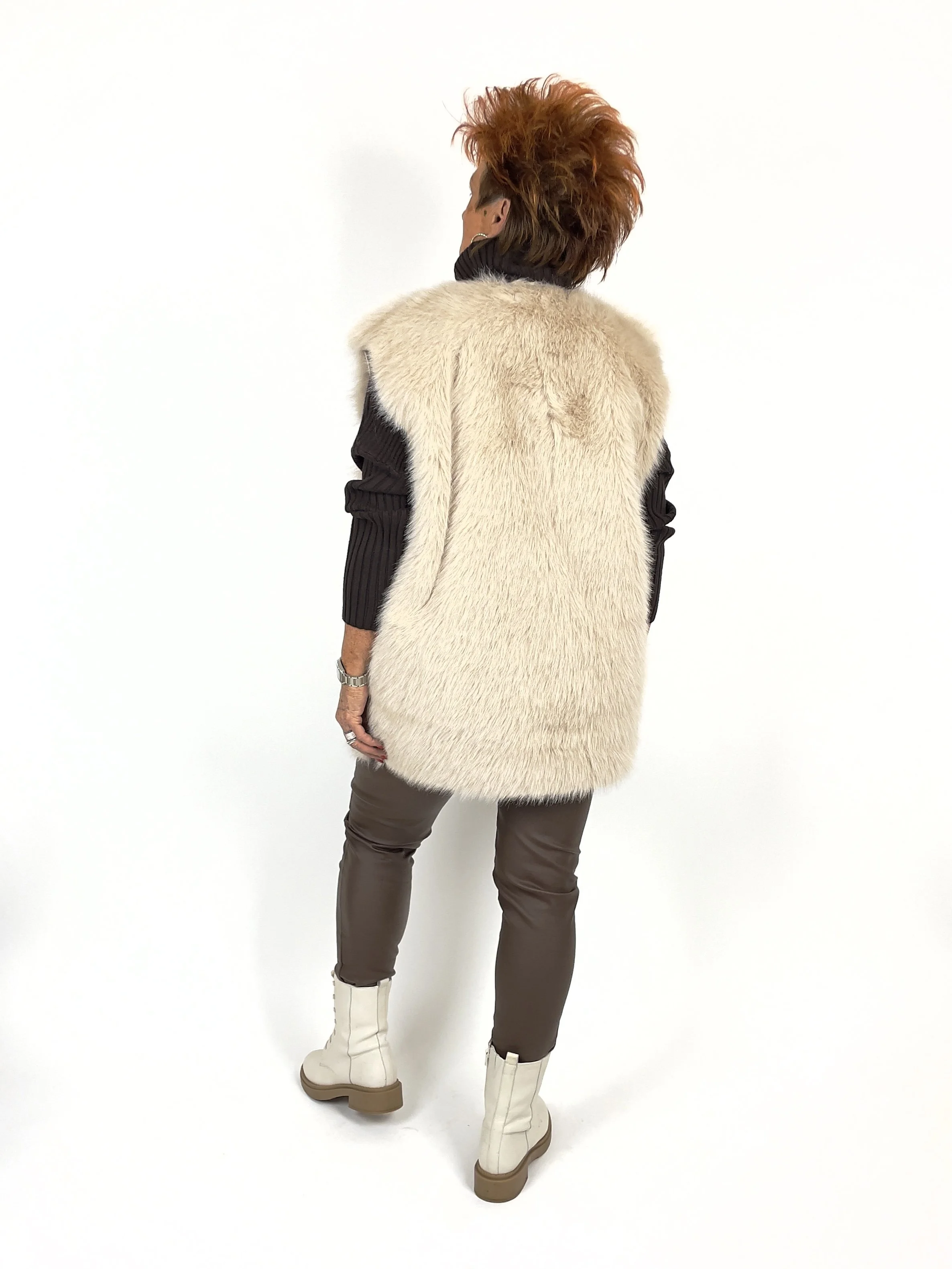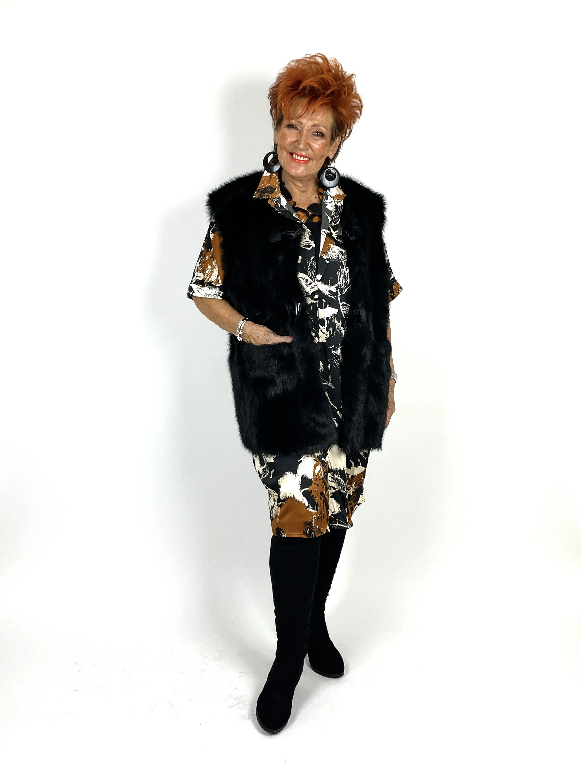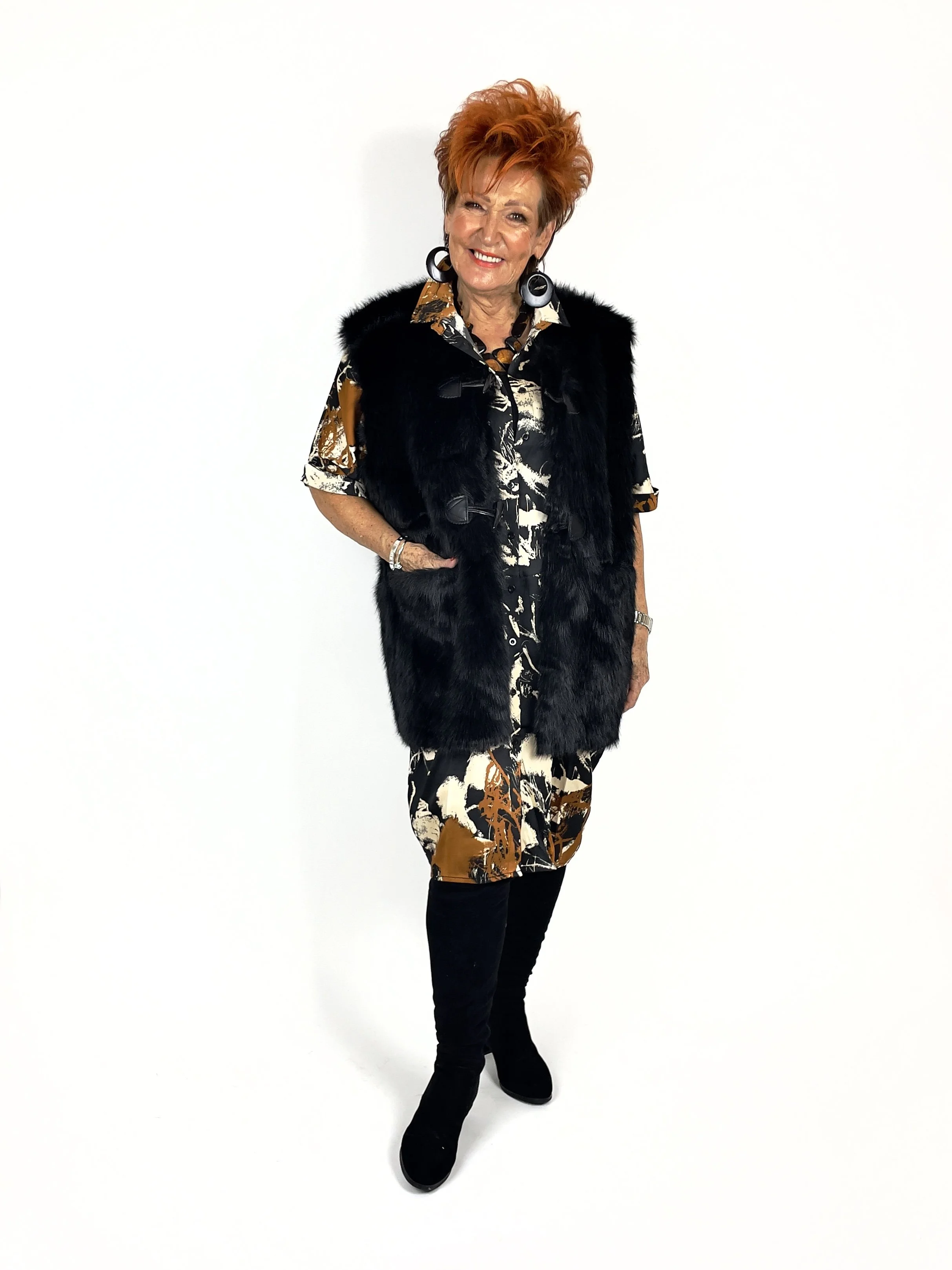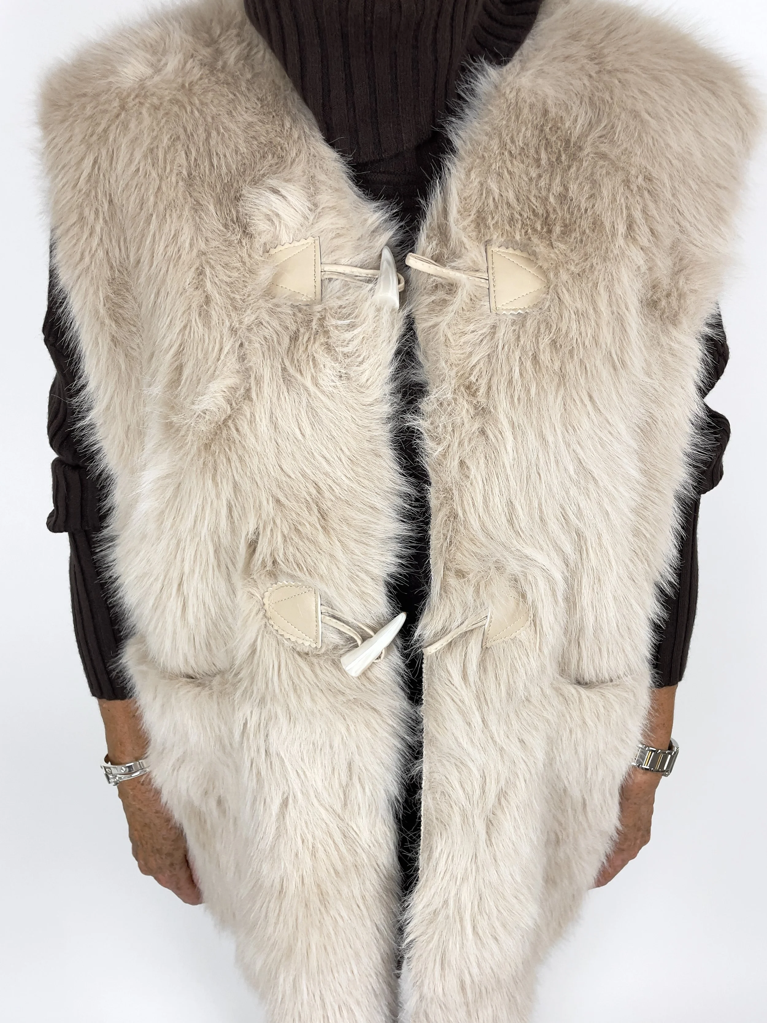 100% polyester ‘Malissa J’ faux fur toggle gilet